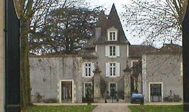 : Le Bergeracois Au pays de Montaigne Près de l'abside de Sainte-Aulaye-de-Breuilh, le château de ce même nom est bâti sur le bord de la Dordogne qu'il contemple depuis sa terrasse ombragée de cèdres. Les caves sont voûtées ; des douves attentent que le repaire fut fortifié. S'élèvent, à l'extrémité d'une belle allée de platanes, des logis du XVIIIe siècle soudés par une tour circulaire à mâchicoulis. C'était le fief de François de Ségur de Sainte Aulaye, compagnon d'Henri IV, puis des Lanau." |